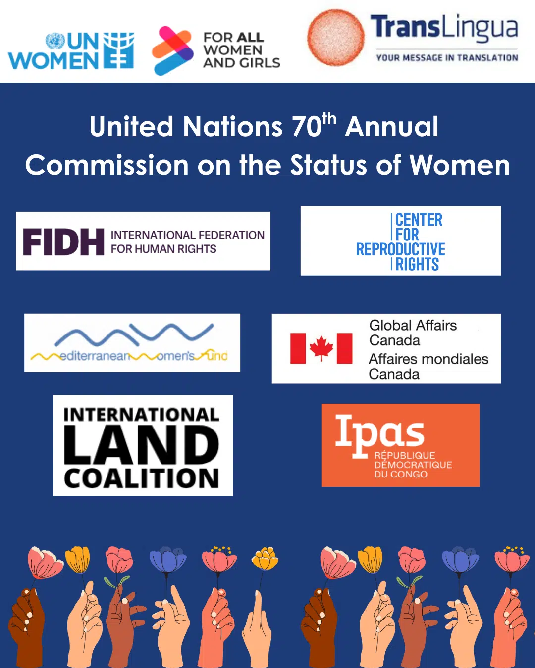 And that’s a wrap for the first week of the United Nations Commission on the Status of Women’s meetings! TransLingua was honored to attend and provide simultaneous interpretation services at multiple events throughout the week, including roundtable discussions and panels hosted by Ipas Democratic Republic of Congo, Fédération internationale pour les droits humains/International Federation for Human Rights, the International Land Coalition, the Permanent Mission of Canada to the UN, and the Mediterranean Women’s Fund!